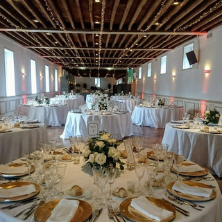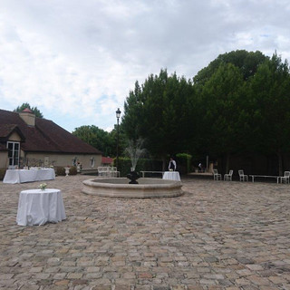 Une fois la cérémonie terminée, les invités sont passés au cocktail sur la Cour Francini, puis dans le salon des Garennes pour le dîner, servi par leur traiteur venu d'Italie.