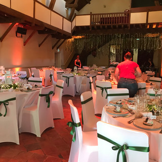 Les mariés et leurs invités sont arrivés vers 18h pour le vin d'honneur, servi sur la terrasse et le jardin du Clos Poullain, par notre partenaire traiteur, la maison Gaulupeau à Versailles. Le dîner s'est ensuite poursuivi dans le salon de la Cathédrale.