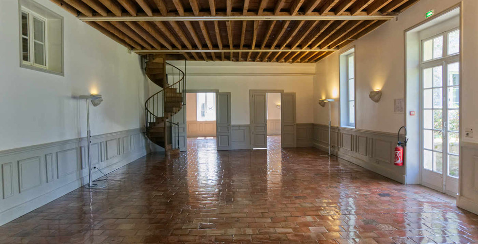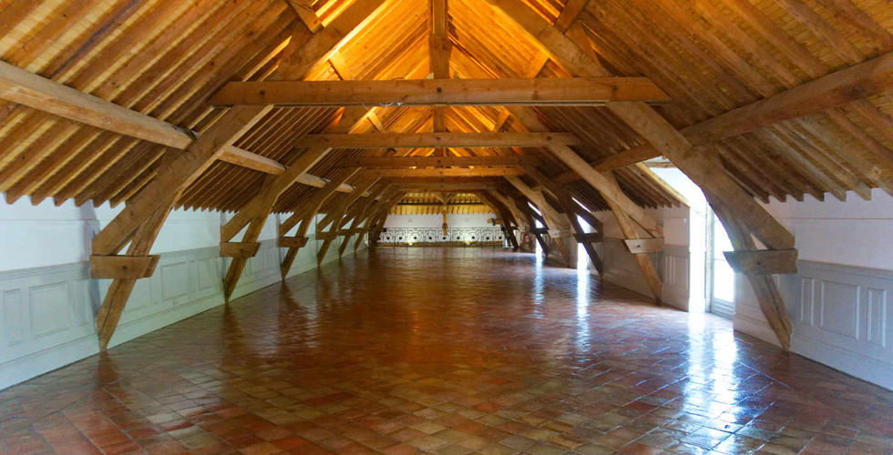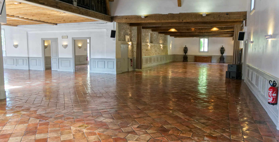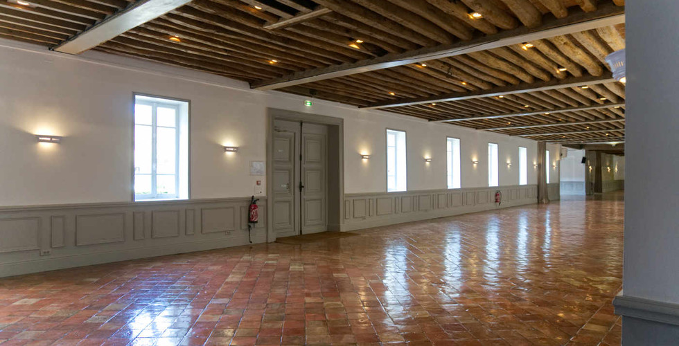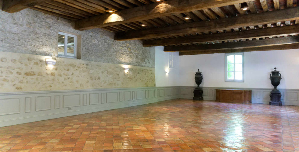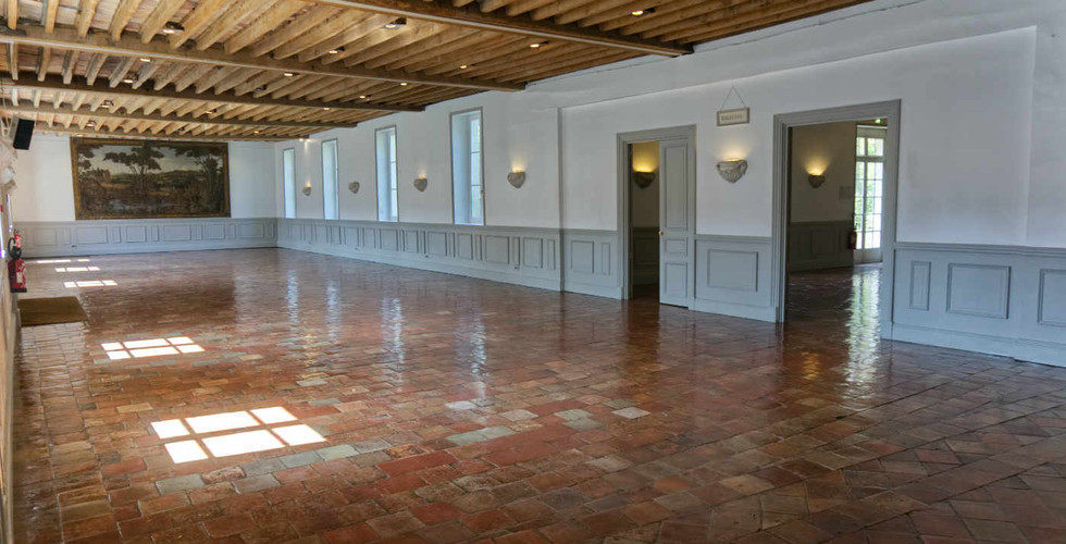 - Les boiseries des Garennes changent pour un ton gris moderne et doux, qui met en valeur les tommettes anciennes et les poutres plusieurs fois centenaires de ce salon si particulier...
