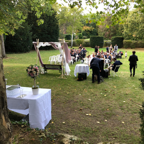 La belle pelouse du Jardin du Clos Poullain a accueilli de magnifiques cocktails ainsi que des cérémonies. Ce grand espace à part et totalement clos permet une libre configuration des buffets et des animations.